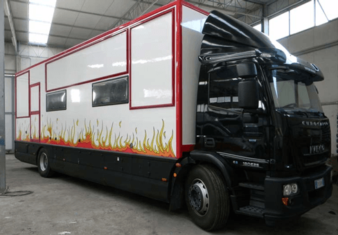 Unità mobili di ogni genere con molteplici destinazione d’uso: laboratori mobili, autofficine, uffici mobili, cucine mobili, autonegozi, furgoni trasmissioni radio e regia televisiva, furgoni isotermici, furgoni blindati per trasporto valuta, furgoni trasporto ossigeno terapeutici e merci pericolose, automezzi antincendio etc.